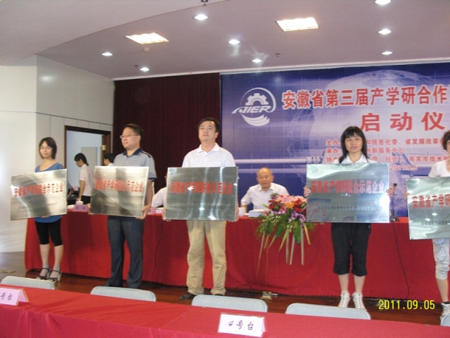 9月5日公司作為安徽省產(chǎn)學(xué)研聯(lián)合示范企業(yè)應(yīng)邀出席了在合肥舉行的第三屆產(chǎn)學(xué)研合作網(wǎng)上對(duì)接周活動(dòng),并參加了授牌和簽約儀式。