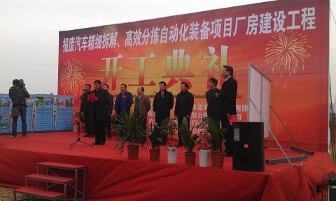 2012年12月10日,銅陵天奇藍(lán)天機(jī)械設(shè)備有限公司彩旗飄揚(yáng),氣球飛舞,氣球下方的“凝心聚力謀行業(yè)發(fā)展 爭創(chuàng)佳績促企業(yè)跨越”“加強(qiáng)科技合作與交流 走開放型科技發(fā)展之路”“以黨的十八大精神為統(tǒng)領(lǐng) 推進(jìn)企業(yè)跨越發(fā)展 科學(xué)發(fā)展 和諧發(fā)展”“推進(jìn)綠色發(fā)展、循環(huán)發(fā)展、低碳發(fā)展 加強(qiáng)生態(tài)文明建設(shè)”的標(biāo)語,在空中格外醒目。 11點(diǎn)08分,“報(bào)廢汽車精細(xì)拆解、高效分揀自動(dòng)化裝備項(xiàng)目廠房建設(shè)工程”儀式正式開始。儀式由公司總經(jīng)理錢立華先生主持。儀式上天奇藍(lán)天董事長汪國春先生作項(xiàng)目介紹并致辭。工程施工單位江西省群力建設(shè)有限公司副總經(jīng)理徐丙洋先生也作了發(fā)言,表示一定按質(zhì)按期完成此項(xiàng)工程。銅陵市經(jīng)濟(jì)技術(shù)開發(fā)區(qū)管委會(huì)主任王毅軍先生也發(fā)表講話,對項(xiàng)目開工表示祝賀,希望項(xiàng)目建設(shè)各方精心組織、科學(xué)調(diào)配、保質(zhì)保量,完成建設(shè)任務(wù),希望項(xiàng)目盡早建成、投產(chǎn)。 最后,天奇股份創(chuàng)始人黃偉興先生宣布開工令,在陣陣掌聲和轟鳴的禮炮聲中,本次開工慶典儀式圓滿劃上句號。 “報(bào)廢汽車精細(xì)拆解、高效分揀自動(dòng)化裝備項(xiàng)目廠房建設(shè)工程”是同日開工的“銅陵市長三角區(qū)域性汽車產(chǎn)品回收利用再制造產(chǎn)業(yè)基地項(xiàng)目”的配套項(xiàng)目。項(xiàng)目的開工是企業(yè)積極響應(yīng)政府大力發(fā)展汽車循環(huán)經(jīng)濟(jì)的號召,不斷擴(kuò)大生產(chǎn)經(jīng)營規(guī)模,加大技術(shù)改造投入,走科技進(jìn)步與創(chuàng)新之路的結(jié)果;更是天奇股份支持地方經(jīng)濟(jì)建設(shè),轉(zhuǎn)變觀念、順勢而謀之為。