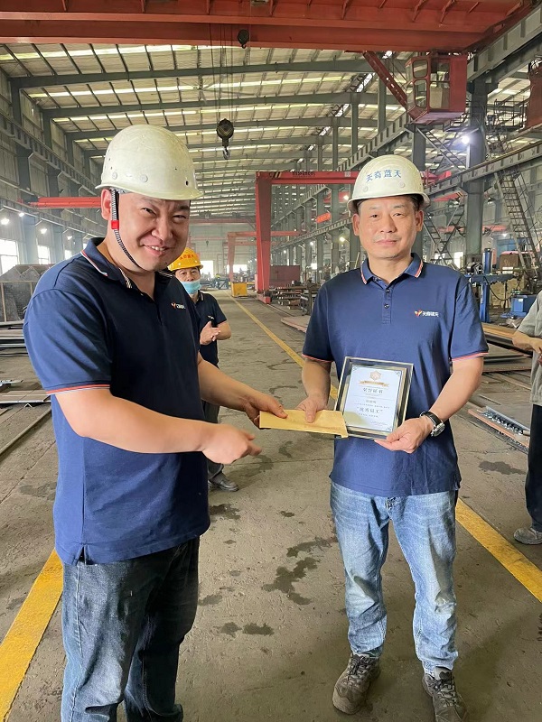 6月2日上午11時(shí),天奇藍(lán)天公司在生產(chǎn)現(xiàn)場(chǎng)召開了一場(chǎng)表彰大會(huì)。 首先,由公司總經(jīng)理助理施樂勤對(duì)五月份在“先進(jìn)班組”考核中優(yōu)勝的“下料車間曹軍班組”和“裝配朱長生班組”授予了先進(jìn)班組流動(dòng)紅旗和獎(jiǎng)金,并對(duì)2021年受股份公司表彰的“優(yōu)秀員工”阮德明、朱風(fēng)巧及“崗位標(biāo)兵”谷昆明、姚鎮(zhèn)四名同志頒發(fā)榮譽(yù)證書和獎(jiǎng)金。 企業(yè)穩(wěn)健發(fā)展離不開全體員工的辛勤付出,希望受表彰的優(yōu)秀員工,戒驕戒躁,發(fā)揮模范作用,在今后的工作中再接再厲、全力以赴、爭創(chuàng)佳績。愿和諧、互勉、共同進(jìn)步的氣氛長存;讓企業(yè)文化扎根在每一位員工的心中。